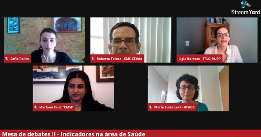 A mediadora do encontro foi a assessora de gabinete do conselheiro Maurício Faria, Sofia Rolim, que é coordenadora do Grupo de Trabalho de Saúde do Observatório de Políticas Públicas do TCMSP. Também fizeram parte da mesa, a professora da Universidade Federal do ABC; Maria Luiza Levi, a coordenadora do grupo de estudos do Instituto de Estudos Avançados da Universidade de São Paulo e professora da Faculdade de Filosofia, Letras e Ciências Humanas da instituição, Ligia Viseu Barrozo, o responsável pela Coordenação de Epidemiologia e Informação da Secretaria Municipal de Saúde de São Paulo (CEInfo), Roberto Tolosa Jr, e auditora e integrante do Observatório de Políticas Públicas do TCMSP, Mariana Mendes Cruz.
