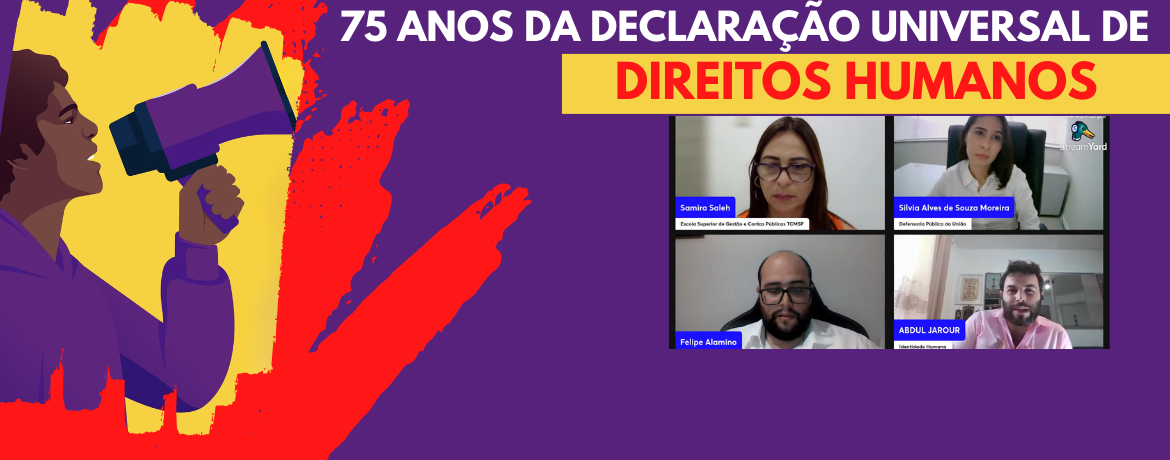 Para lembrar a passagem dos 75 anos de existência da Declaração Universal de Direitos Humanos, celebrada no dia 10 de dezembro de cada ano, a Escola Superior de Gestão e Contas Públicas (EGC) do Tribunal de Contas do Município de São Paulo promoveu uma palestra virtual ao vivo, na quinta-feira (07/12). Trata-se de tema dos mais atuais, principalmente em função dos recentes conflitos internacionais que são registrados em grande parte do planeta, o que gera preocupação para a população mundial. O evento teve transmissão pelo canal da EGC no YouTube.