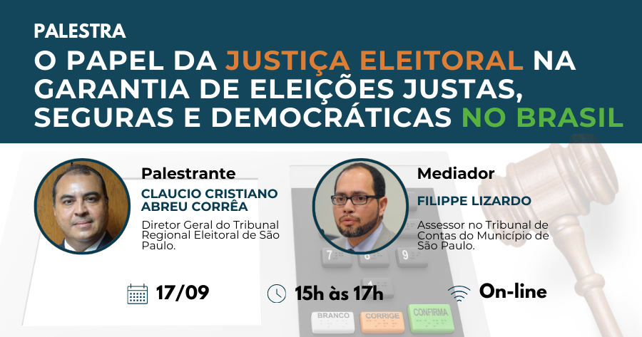 Criada em 1932, a Justiça Eleitoral Brasileira desempenha um papel fundamental na garantia de eleições justas, seguras e democráticas. Além da atuação direta na Jurisdição eleitoral, realizada pelos Tribunais Regionais e pelo Tribunal Superior Eleitoral, a Justiça Eleitoral tem atuado com frequência na divulgação de informações fidedignas e formação e capacitação social sobre o sistema eleitoral nacional. As múltiplas frentes de atuação da Justiça Eleitoral são essenciais em períodos de obscurantismo e de descrédito das Instituições. Para tratar da relevância da Justiça Eleitoral e de suas frentes de atuação, a EGC recebe o Diretor Geral do TRE-SP, Cláucio Cristiano Abreu Corrêa.