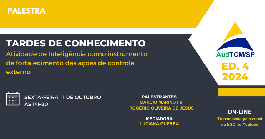 No evento, será apresentado um panorama sobre o que é a atividade de inteligência nos Tribunais de Contas, o que é produção de conhecimento e o papel das UIEs nos Tribunais de Contas. Os palestrantes falarão sobre a Rede Infocontas e as parcerias entre os Tribunais de Contas, e apresentarão casos de atuação em parceria com outros órgãos.