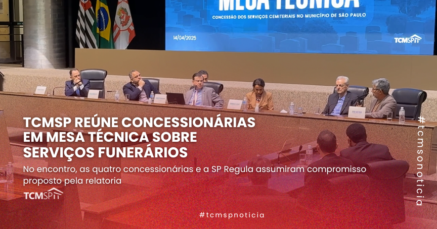 O Tribunal de Contas do Município de São Paulo realizou mesa técnica com os dirigentes das quatro concessionárias dos Serviços Funerários da Capital e da SP-Regula, na manhã dessa segunda-feira (14/04), contando também com a presença do Vereador Hélio Rodrigues representando a Presidência da Câmara Municipal de São Paulo.