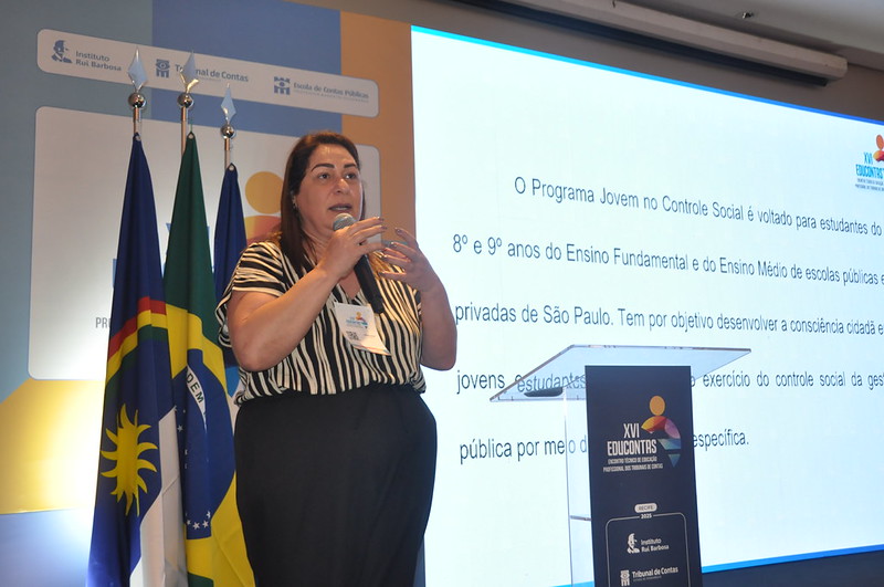 Na oportunidade, o Programa Jovem no Controle Social (PJCS), instituído pela da Escola Superior de Gestão e Contas Públicas do TCMSP, foi apresentado como exemplo de intercâmbio de boas práticas a ser seguido no âmbito dos painéis temáticos. Os representantes da EGC, Gilson Piqueras Garcia e Samira Saleh, atraíram a atenção de grande número de participantes do Educontas ao explicar detalhes do PJCS, que tem por objetivo promover a participação cidadã e capacitar os estudantes do 8º e 9º anos das escolas públicas e privadas para compreender a gestão dos gastos públicos.