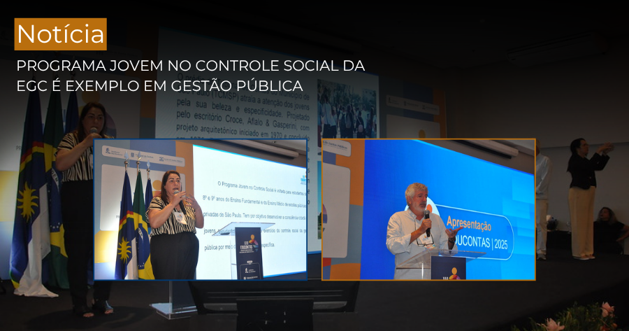 A Escola Superior de Gestão e Contas Públicas (EGC), ligada ao Tribunal de Contas do Município de São Paulo (TCMSP), participou do XVI Encontro Técnico de Educação Profissional dos Tribunais de Contas (Educontas), que foi realizado nos últimos dias 6 e 7 de novembro, na cidade de Recife. No evento, a EGC foi representada pelo diretor pedagógico, Gilson Piqueras Garcia, e pela coordenadora do Programa Jovem no Controle Social (PJCS), Samira Saleh.