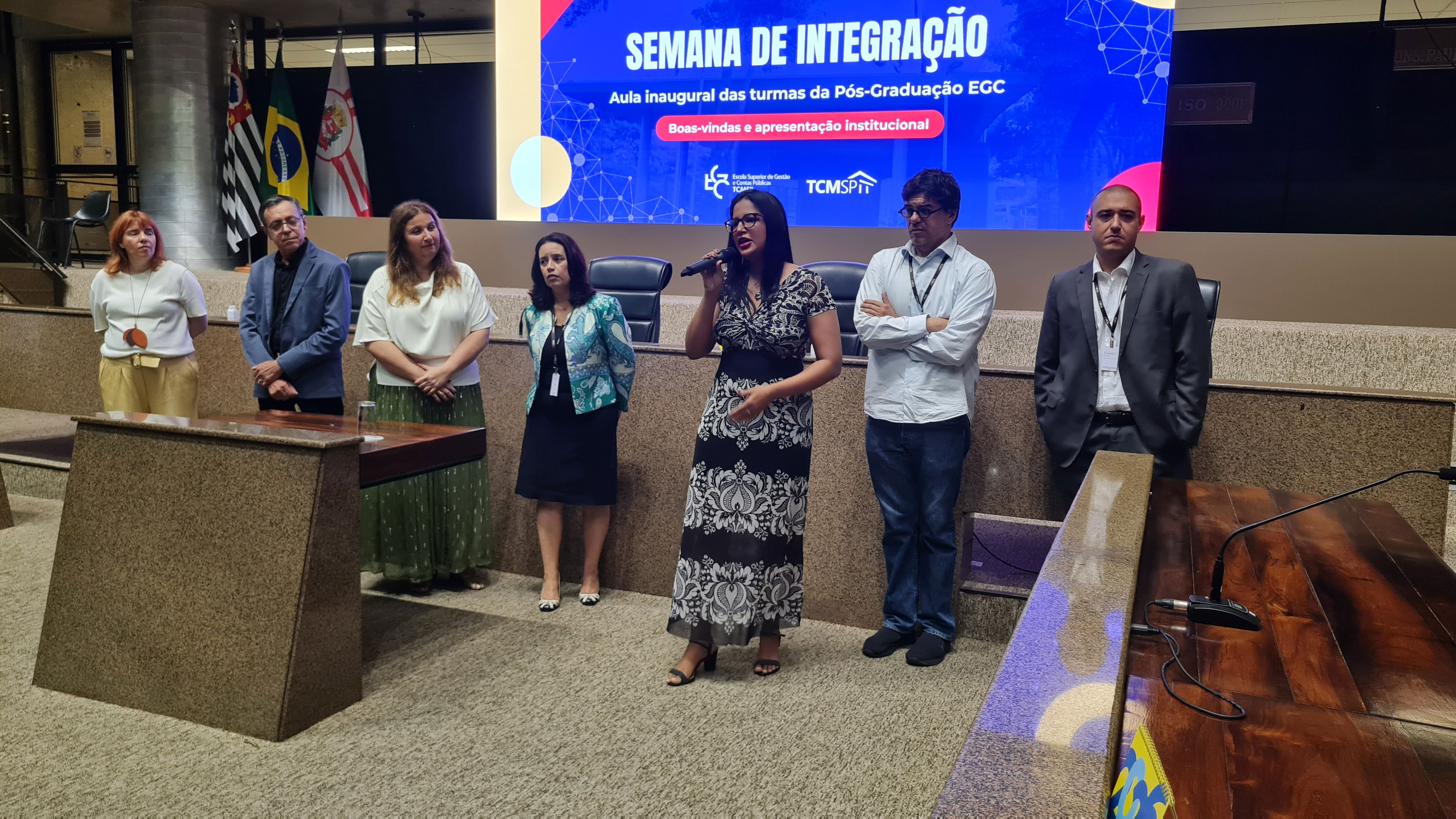 A Escola Superior de Gestão e Contas Públicas (EGC), braço educacional do Tribunal de Contas do Município de São Paulo (TCMSP), promoveu duas aulas inaugurais e lançou a Semana de Integração, na terça-feira (03/02), voltada para as alunas e os alunos dos cursos de pós-graduação mantidos pela instituição. O evento de boas-vindas, realizado na parte da manhã no plenário do TCMSP, reuniu alunas e alunos da especialização em Direito Administrativo e em Engenharia Civil: Infraestrutura e Obras Públicas. Já o da noite, recebeu os ingressantes em Políticas Públicas.